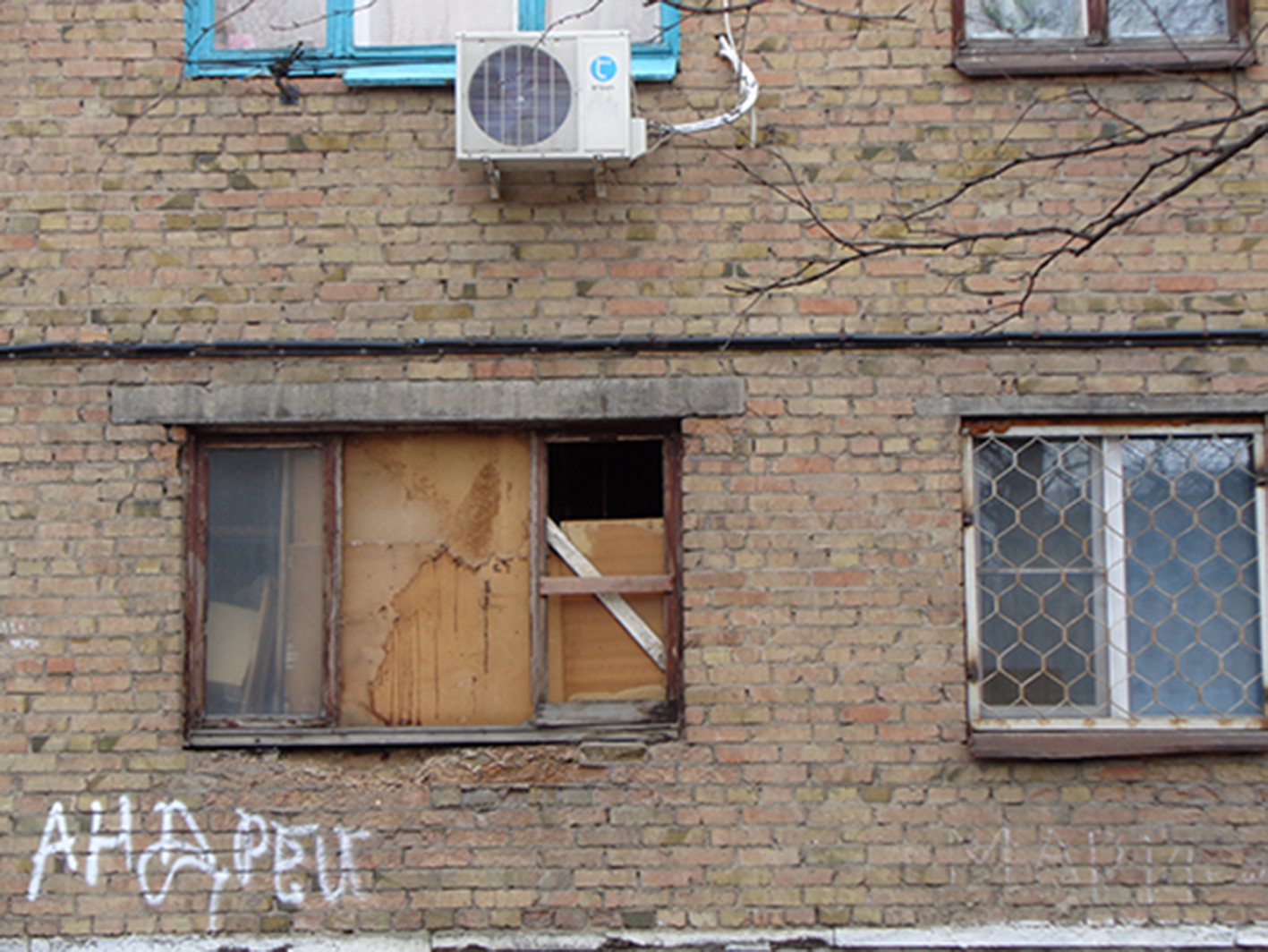 Визитной карточкой этого дома может служить главный фасад, где на первом этаже в одном из окон выбиты стекла, а вместо них – куски фанеры и картона. Впрочем, куда более красочная картина открывается со двора, где двери подъездов не закрываются вовсе, а подвальные проемы представляют собой импровизированные помойки. Видимо, сами жильцы дома во время холодов закрывали проемы матрасами и сорванными с петель дверями, но с наступлением оттепели такая необходимость отпала, и туда стали выбрасывать мусор и пустые бутылки.