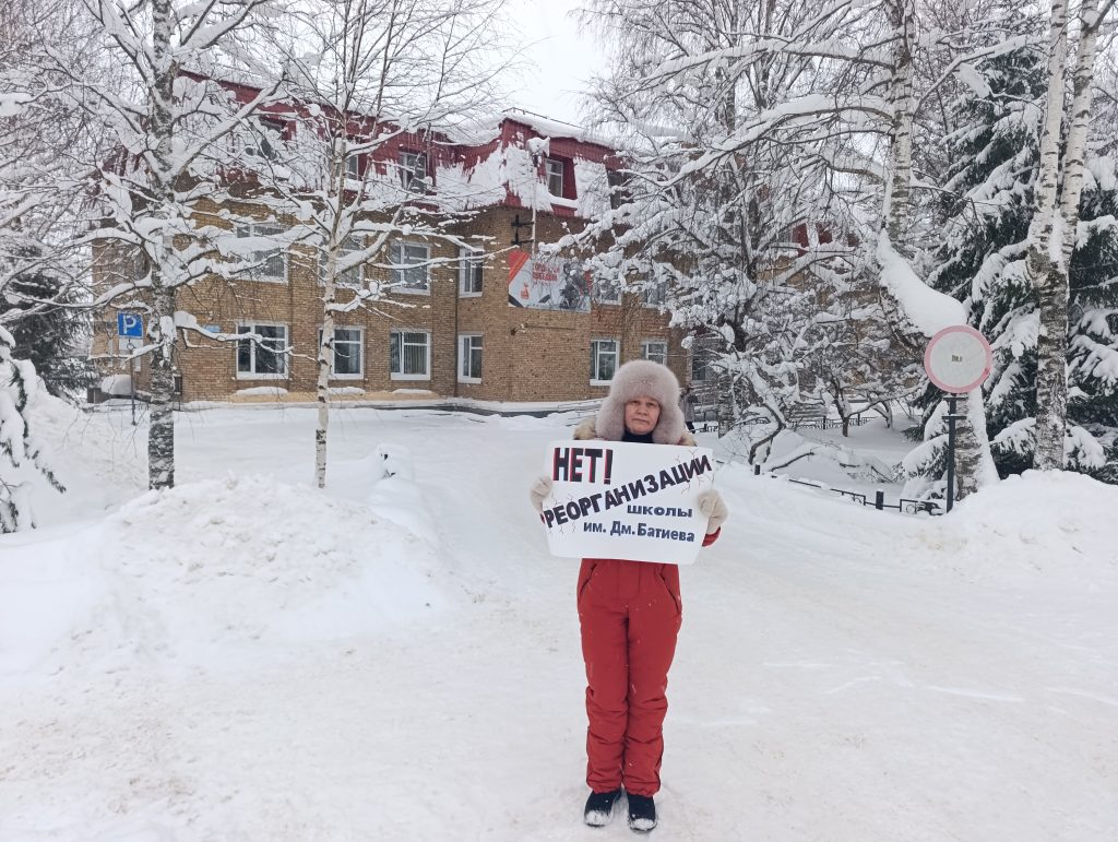 В этот понедельник депутат СП «Межог» от КПРФ Ольга Федулова провела одиночный пикет у администрации Усть-Вымского района против реорганизации школы им. Дмитрия Батиева в селе Гам. На акцию протеста она вышла из-за многочисленных обращений от обеспокоенных родителей. Людей тревожит не только потенциальное падение качества образования и опасная дорога до другой школы, но и сама судьба учебного заведения. В селе опасаются, что реорганизация станет первым шагом к полному закрытию школы, по печальному сценарию, уже реализованному в поселке Донаель. Через 20 минут к пикетчице подошли сотрудники полиции – по звонку местной жительницы, увидевшей в одиночном плакате «возможный митинг». После дачи объяснений Ольгу отпустили, и она продолжила акцию протеста.