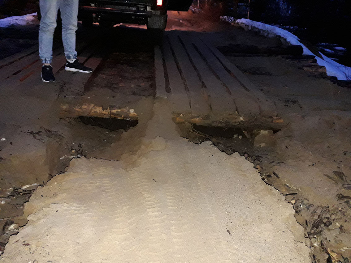 — Рискуют не только керкинцы, но и жители Ижемского района, — говорит депутат райсовета, житель Тома Игорь Рубан. — Висячий мост шатается под порывами ветра, а после дождя настил полотна становится скользким. На этом экстрим-аттракционе только крутой блокбастер снимать… А как я перевозил в распутицу товары первой необходимости для «блокадного» поселения «Том»! Когда переправляли провизию на лодке через р. Айюва, как раз лед тронулся, и лодка едва не перевернулась…
