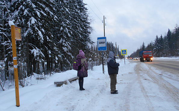 Этот участок дороги формально находится в черте города. По правилам, скорость автомашин тут не должна превышать 60 км. Но большинство автомобилистов, почему-то считая, что находятся на скоростной трассе, разгоняются до сотни. Дорожный знак, предупреждающих водителей о том, что они въехали в город, находится далеко от остановки — у развилки на мусорный полигон.